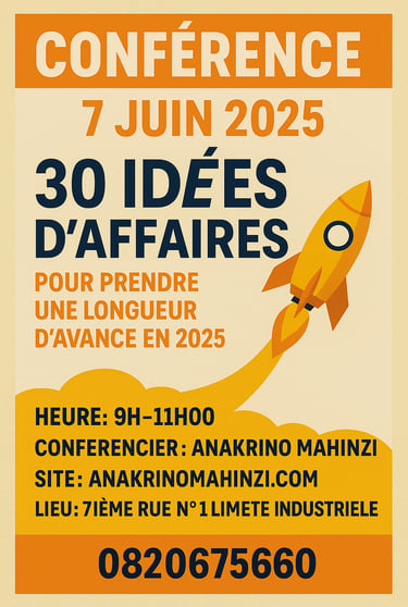 🎤 Anakrino Mahinzi te donne 30 idées d’affaires concrètes, actuelles et rentables pour te lancer ou rebondir dans le monde de l’entrepreneuriat !