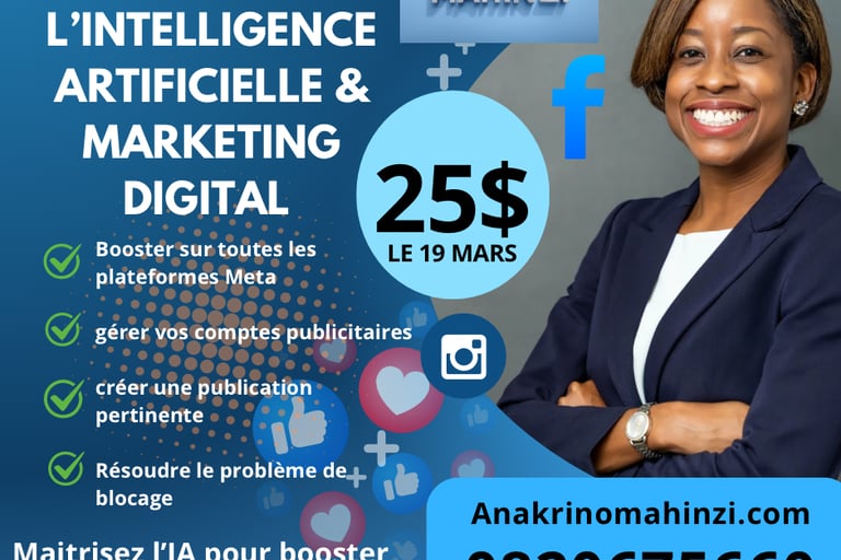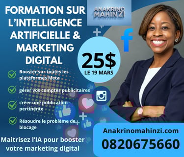 💡 Objectif final : À la fin de cette formation, vous serez capable de booster votre marketing digital avec l’IA, de gérer vos campagnes publicitaires Meta efficacement et de créer du contenu engageant tout en évitant les blocages.